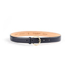 30 mm curved belt in full-grain cowhide leather lined with nubuck leather and gold buckle in brass.