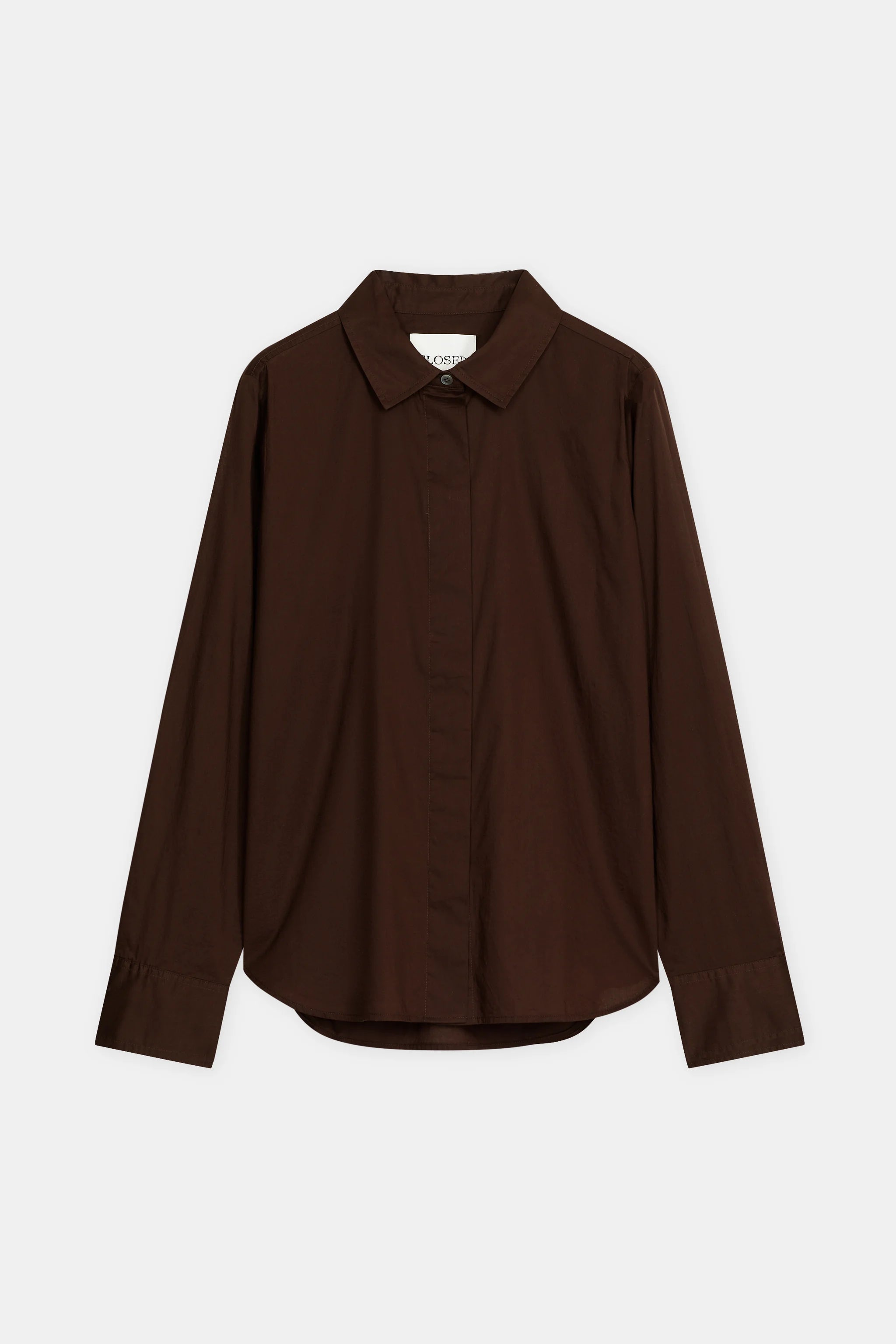 Das klassische Hemd ist aus einer leichten Buamwollqualität in einem stückgefärbten Braun-Farbton mit ungewaschenem Finish gefertigt. Es hat eine reguläre Passform und eine verdeckte Knopfleiste. Der spitze Kragen und die rückseitige Kellerfalte runden das Design ab.