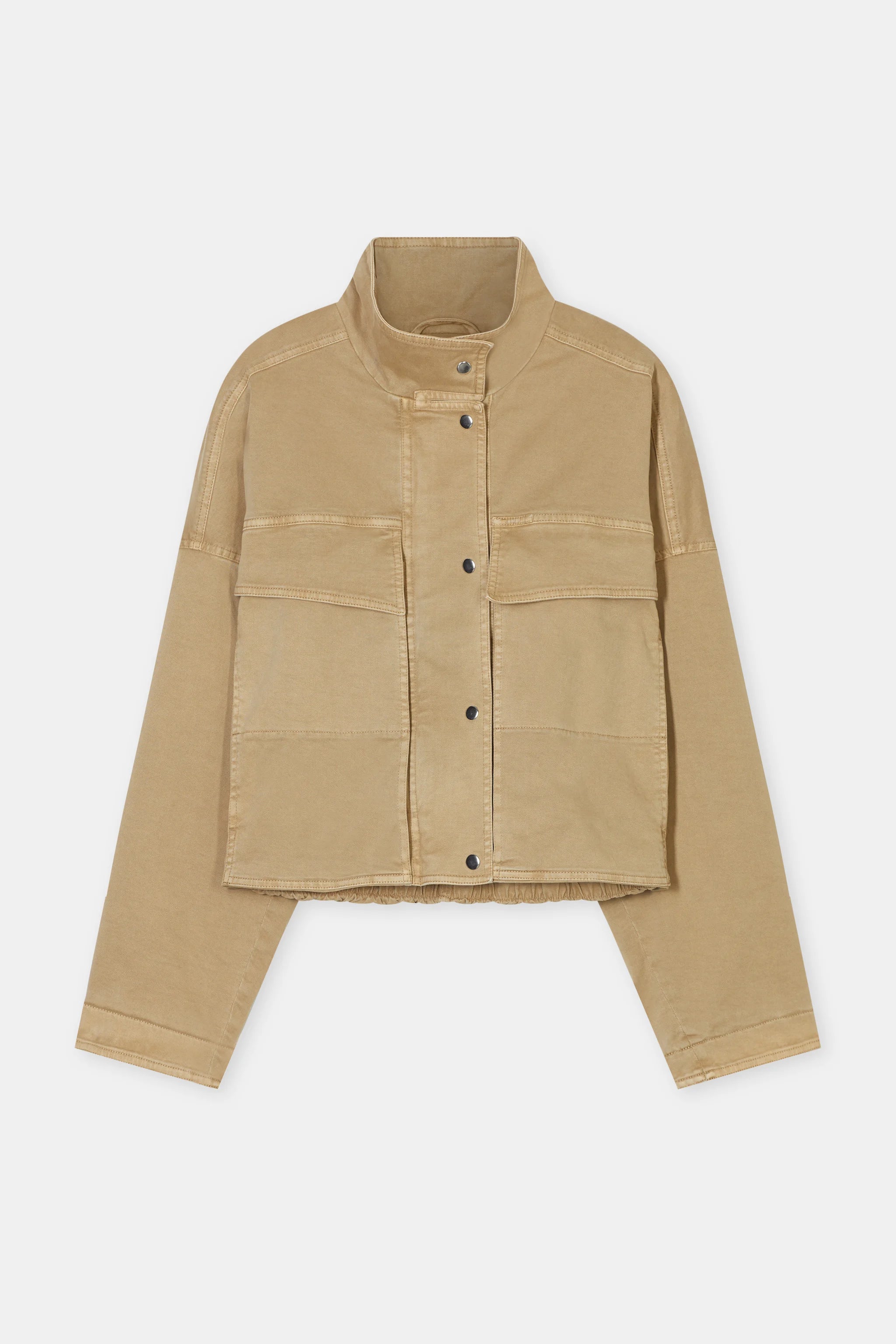 Unsere Jacke vereint Workwear-Stil mit moderner Silhouette. Aus elastischem Bio-Baumwoll-Twill mit Vintage-Waschung. Mit praktischen Pattentaschen, Metallsnaps und elastisch gerafftem Rücken für optimale Passform.